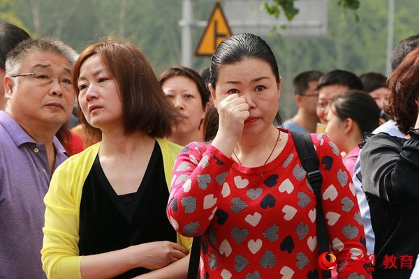 7日上午,家長(zhǎng)目睹孩子進(jìn)入考場(chǎng)的背影流下了眼淚 盧靜/攝