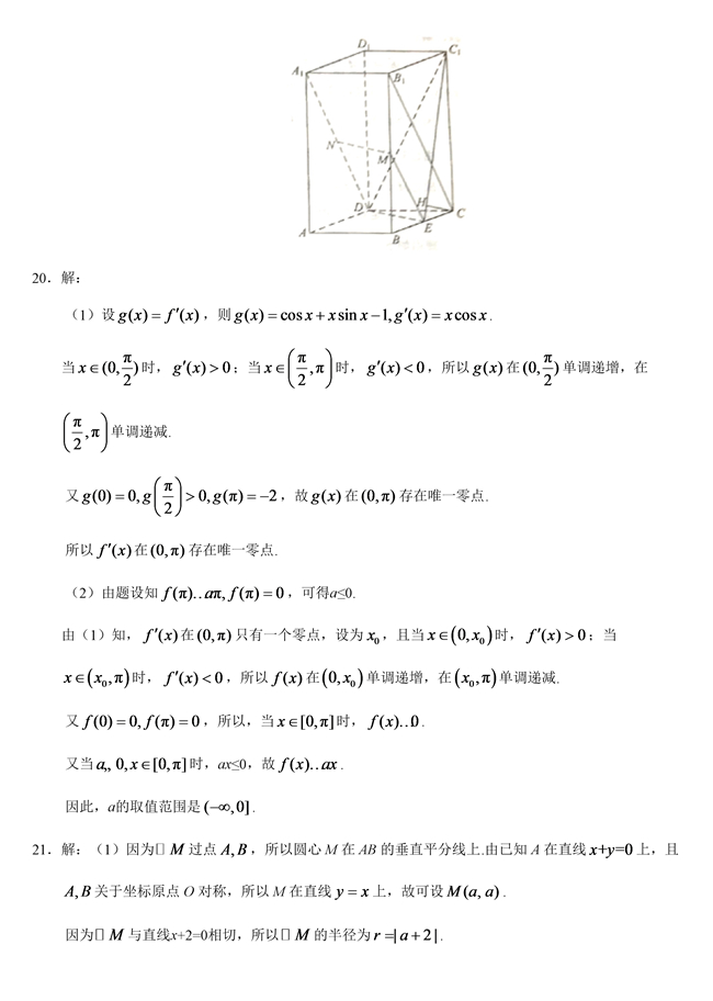 2019年全國卷Ⅰ文科數(shù)學(xué)高考試題答案【3】