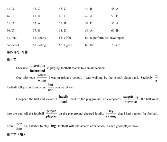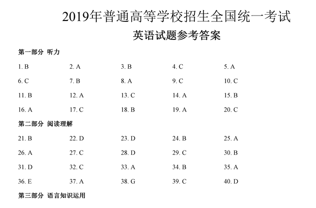 2019年全國卷Ⅰ英語試題答案