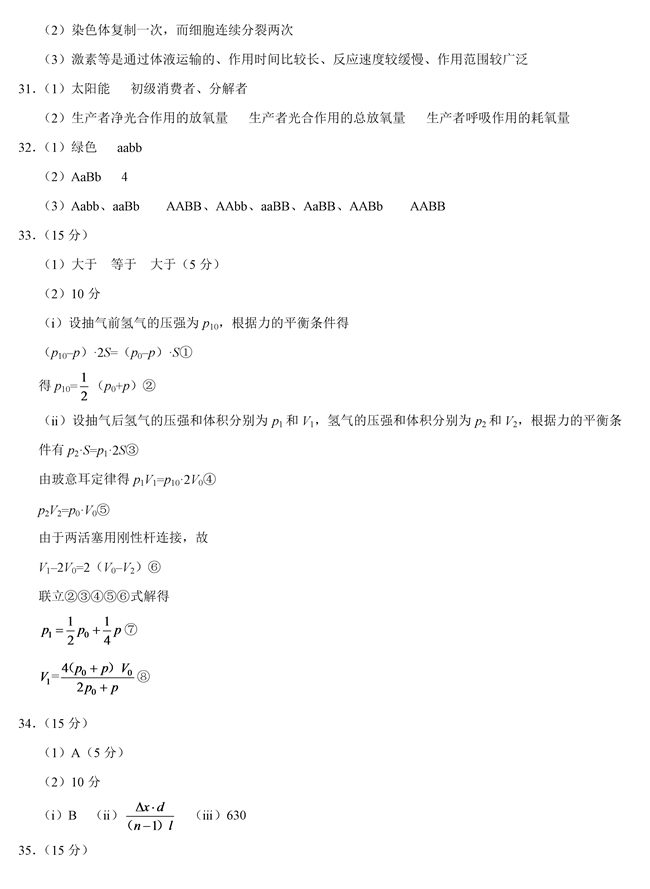 2019年全國(guó)卷Ⅱ理綜高考試題答案【4】