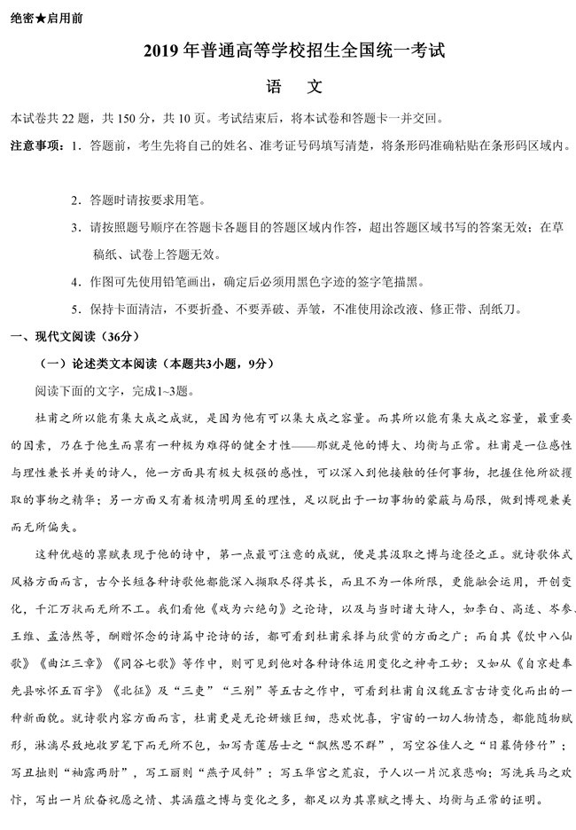 2019年全國(guó)卷Ⅱ語(yǔ)文高考試題
