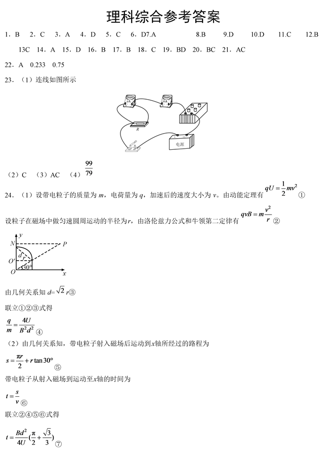 2019年全國(guó)卷Ⅰ理綜高考試題答案