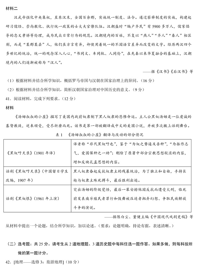2019年全國(guó)卷Ⅲ文綜高考試題【12】