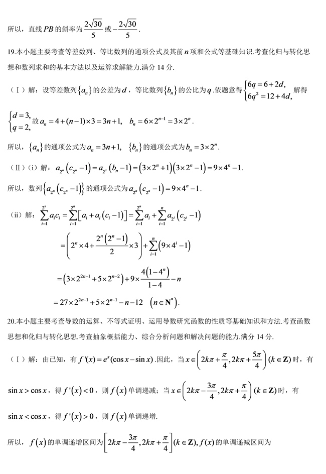 2019年天津卷理數(shù)高考試題答案【4】