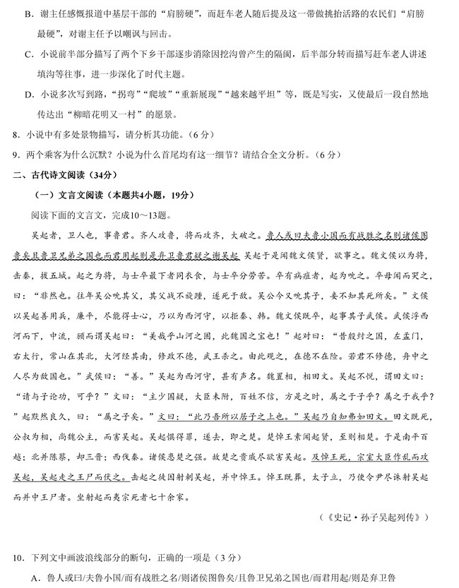 2019年全國卷Ⅲ語文高考試題【7】