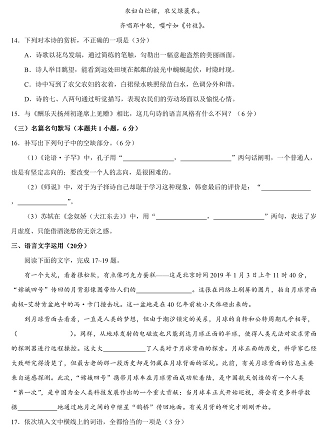 2019年全國(guó)卷Ⅲ語(yǔ)文高考試題【9】