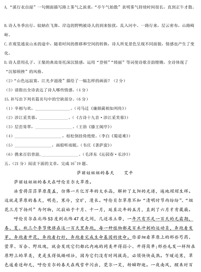 2019年天津卷語文高考試題【7】