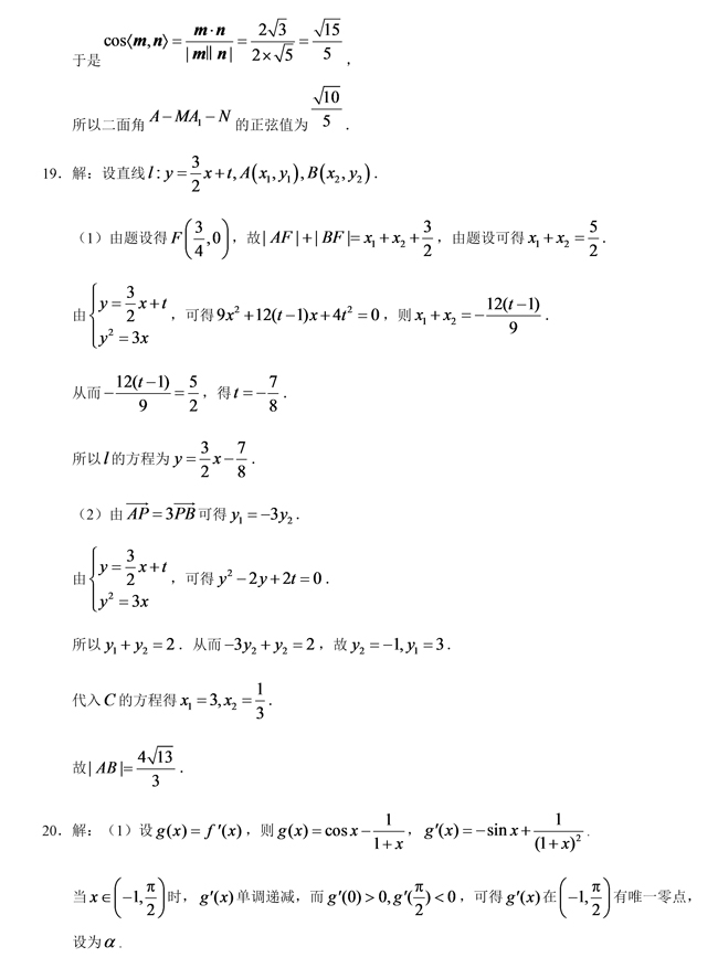 2019年全國卷Ⅰ理科數(shù)學(xué)高考試題答案【3】