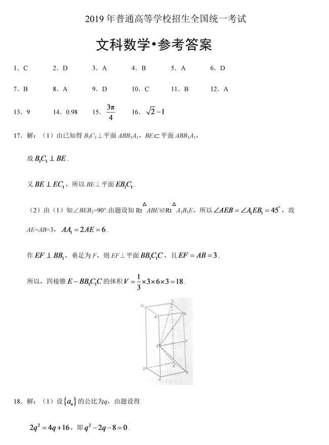 2019年全國卷Ⅱ文科數(shù)學(xué)高考試題答案