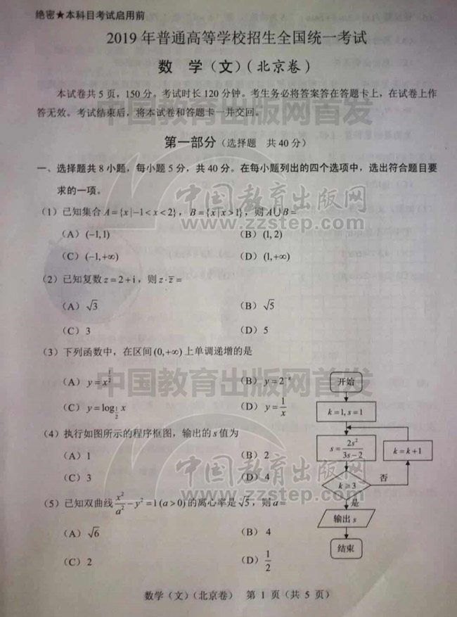 2019年高考北京市文科數(shù)學試卷