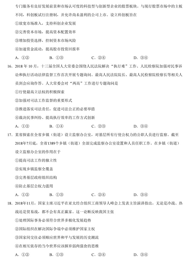 2019年全國卷Ⅱ文綜高考試題【4】