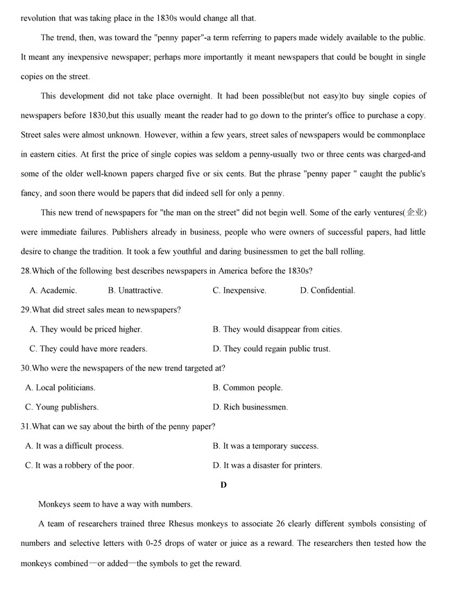 2019年全國(guó)卷Ⅲ高考英語(yǔ)試題【6】