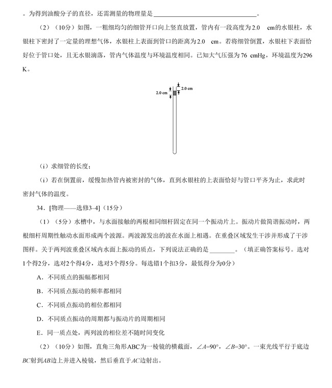 2019年全國卷Ⅲ理綜高考試題【13】