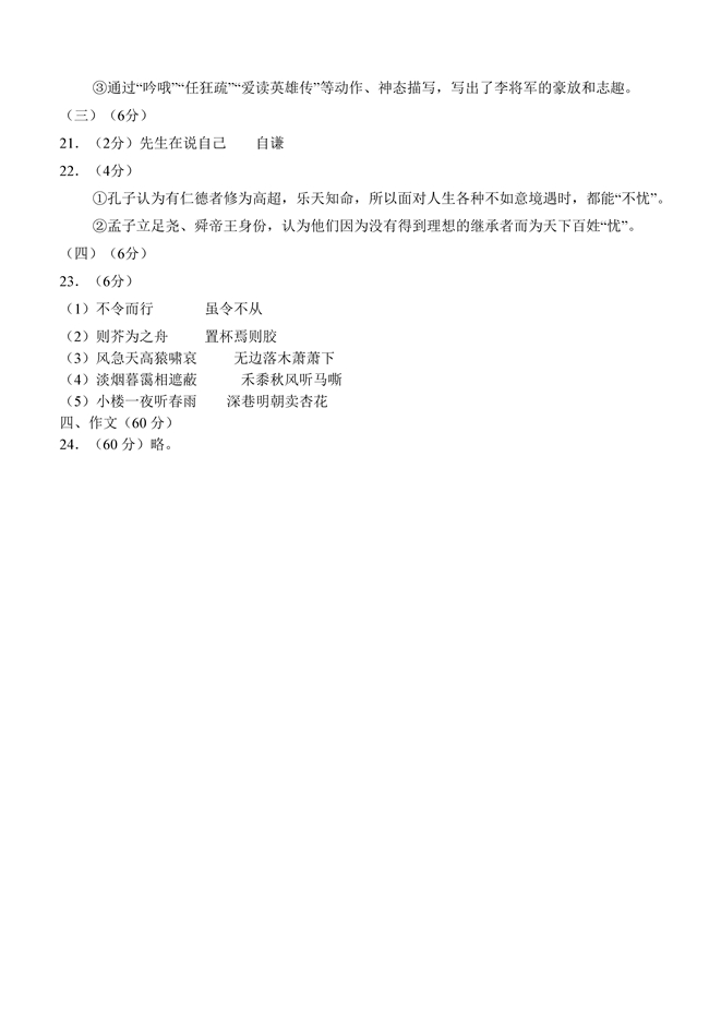 2019年浙江卷語(yǔ)文高考試題答案【3】