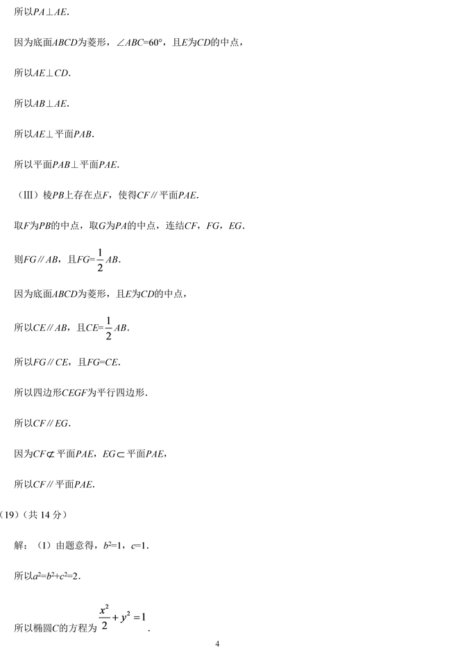2019年高考北京市文科數(shù)學(xué)試題答案【4】