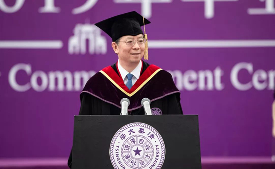 同學(xué)們,你們是我擔(dān)任校長之后迎來的第一批本科生。我很高興能見證你們四年的成長,很欣喜看到你們順利畢業(yè)。從2015年8月20日的開學(xué)典禮,到今天2019年7月7日的畢業(yè)典禮,你們在這個園子里走過了1418天。你們?nèi)雽W(xué)的那一年,西操換上了漂亮的藍(lán)色跑道,紫荊園舉辦了“川湘美食節(jié)”。今年,你們又見證了清華田徑隊實現(xiàn)首都高校田徑運動會“十連冠”、校園里誕生第一家24小時書店。四年前在東操,你們身著迷彩服,口號嘹亮、英姿颯爽,完成了大學(xué)第一課——軍訓(xùn)。四年后的今天,還是在東操,你們身著學(xué)位服,心懷壯志、意氣風(fēng)發(fā),參加大學(xué)里最后一次全校集體活動——畢業(yè)典禮!按猴L(fēng)化雨樂未央,行健不息須自強!弊詮姴幌、厚德載物的校訓(xùn)涵養(yǎng)了你們的君子氣質(zhì),行勝于言的校風(fēng)塑造了你們的篤實品格。你們用熱情奔放的青春活力,在清華108年的歷史畫卷中寫下了絢麗的一筆。在過去的四年中,我們一同見證了奮進(jìn)的清華不斷呈現(xiàn)新氣象,變革的清華持續(xù)展現(xiàn)新作為,開放的清華主動拓展新視野。在扎根中國大地建設(shè)世界一流大學(xué)的道路上,自信的清華擔(dān)當(dāng)起時代的責(zé)任,不斷開拓進(jìn)取、昂首向前。