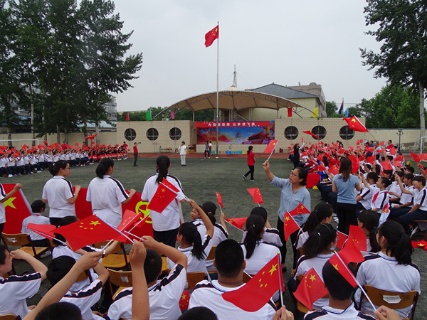 最后全體師生揚起手中的國旗、大合唱《我和我的祖國》,用最真摯的歌聲表達對祖國母親的熱愛和祝福。