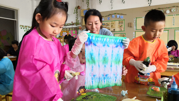 幼兒園在開展剪紙、刺繡、扎染、水墨畫、泥塑等傳統(tǒng)藝術(shù)教學(xué)基礎(chǔ)上,又引進了風(fēng)箏、造紙、舞龍、團扇、京劇臉譜等具有中國特色文化的教學(xué)活動。教師引導(dǎo)幼兒了解了傳統(tǒng)藝術(shù)的發(fā)展歷史,孩子們用筆墨、針線、染料、陶泥、紙漿等材料,通過畫、扎、染、捏、剪、粘等方法,感受我國傳統(tǒng)藝術(shù)文化的神奇魅力。