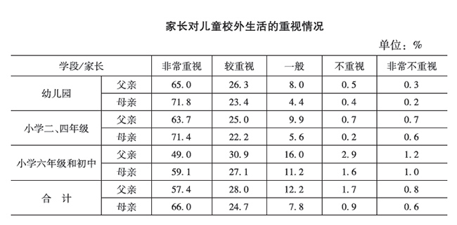 對于兒童的校外生活,85%以上的家長表示“很重視”,60%的家長、59.3%的兒童對目前的校外生活表示“很滿意”或“比較滿意”。90%以上的家長認(rèn)為校外生活對孩子的成長很有價值。95%以上的家長、89.5%的兒童認(rèn)為校外生活有效提高了兒童人際溝通交流方面的能力。