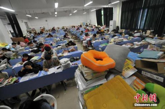 考生們?yōu)榭荚嚾找箞允亍埍?攝