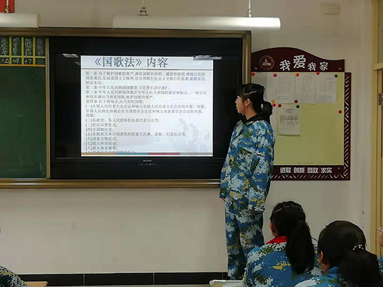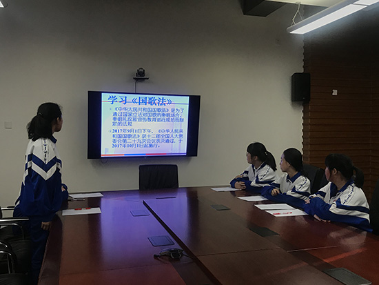 學(xué)校利用升國(guó)旗儀式、主題班會(huì)活動(dòng),團(tuán)日活動(dòng)開展了《國(guó)歌法》《國(guó)旗法》《國(guó)徽法》宣傳教育,此次活動(dòng)廣泛深入地普及國(guó)旗、國(guó)歌、國(guó)徽知識(shí),引導(dǎo)學(xué)生們自覺維護(hù)國(guó)旗、國(guó)歌、國(guó)徽尊嚴(yán),培養(yǎng)師生的愛國(guó)主義情懷,以實(shí)際行動(dòng)慶祝中華人民共和國(guó)成立七十周年。