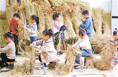 近日,江蘇如皋經(jīng)濟技術(shù)開發(fā)區(qū)實驗幼兒園的小朋友在學(xué)習(xí)編草簾。大雪節(jié)氣剛過,該園開展知民俗,弘揚傳統(tǒng)文化活動,教師帶領(lǐng)小朋友走進田野,學(xué)習(xí)用秸稈編織草繩、草簾,用于包裹過冬果樹。