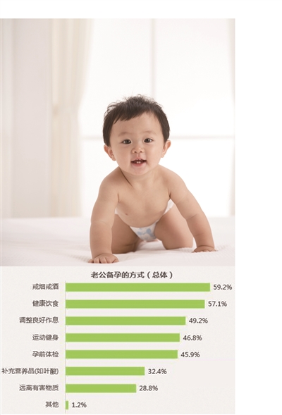 報(bào)告指出,從備孕、孕期到育兒整個(gè)階段,寶爸的參與度呈現(xiàn)上升趨勢。近半數(shù)男性與女性一同參與備孕,主動通過戒煙戒酒、健康飲食、健康作息、運(yùn)動健身等方式調(diào)理身體,營造較好身體環(huán)境。三成以上男性提前服用營養(yǎng)品,這在“85前”以及二胎爸爸人群中表現(xiàn)得更為突出,他們更注意科學(xué)備孕。