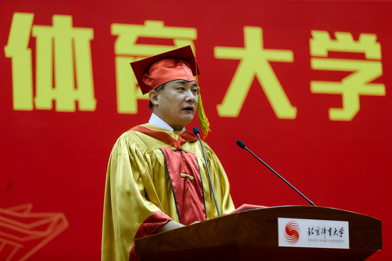 北京體育大學(xué)黨委書記、校長曹衛(wèi)東在2020屆學(xué)生畢業(yè)典禮上發(fā)表講話(學(xué)校供圖)