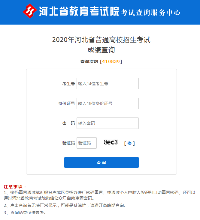 人民網(wǎng)北京7月23日電 河北2020年高考成績開始查詢,點擊進行查詢。
