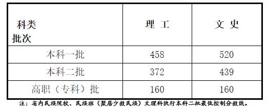 2020年甘肅省普通高校招生錄取最低控制分?jǐn)?shù)線