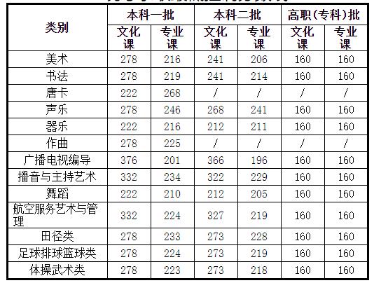 2020年甘肅省普通高校招生藝術(shù)體育類專業(yè)統(tǒng)考錄取最低控制分?jǐn)?shù)線