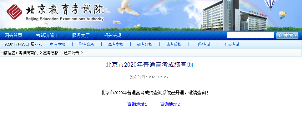 人民網(wǎng)北京7月25日電 2020年北京高考成績查詢系統(tǒng)開通,考生可登陸北京教育考試院進(jìn)行查詢。