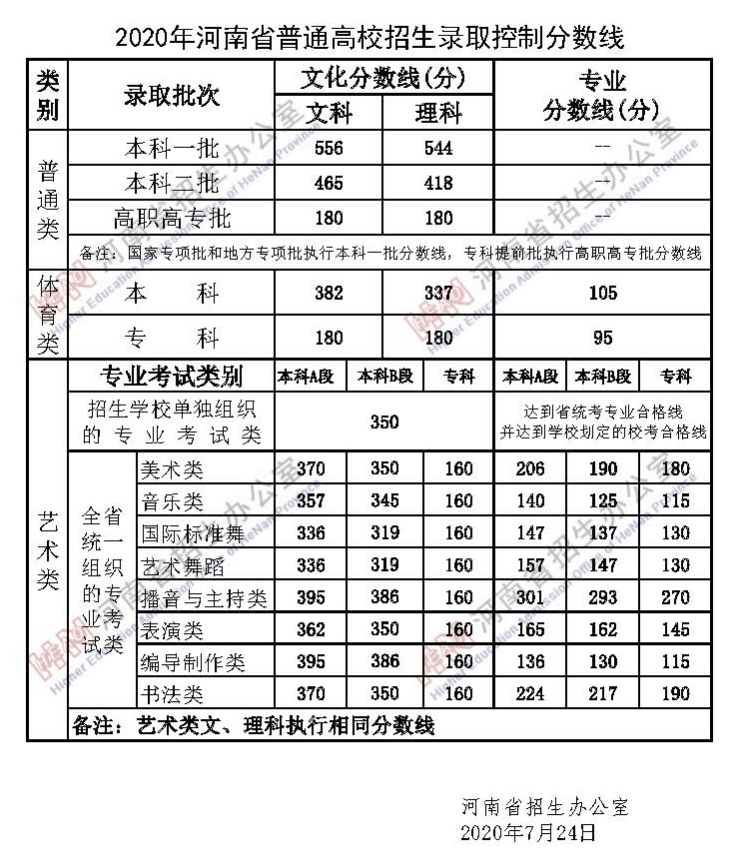 2020河南高考分?jǐn)?shù)線發(fā)布:文科一本556分 理科一本544分