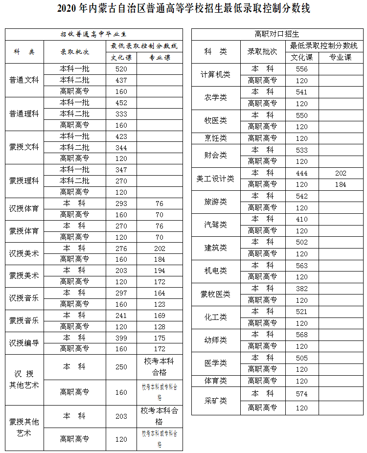 2020內(nèi)蒙古高考分?jǐn)?shù)線發(fā)布:文科一本520分 理科一本452分