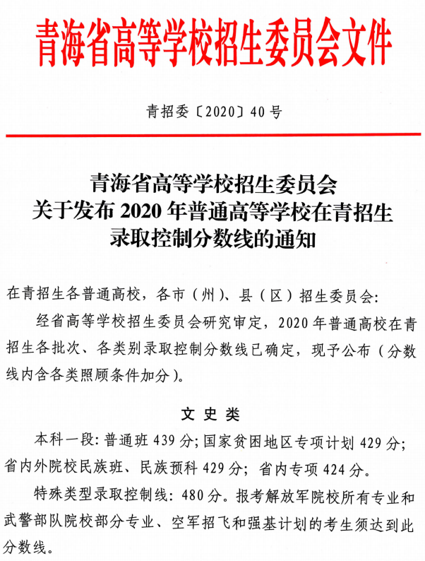 2020青海高考分?jǐn)?shù)線發(fā)布:文史一本439分 理工一本352分