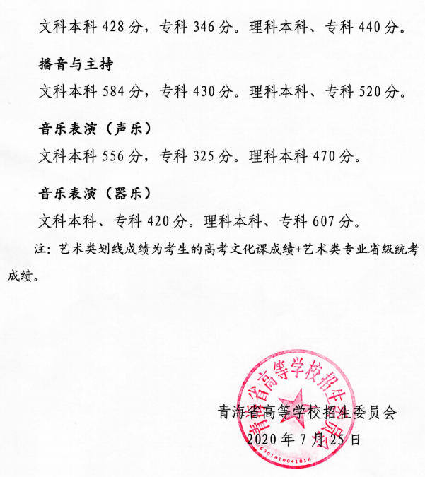 人民網(wǎng)北京7月27日電 據(jù)青海省教育考試網(wǎng)消息,青海省2020年普通高校招生錄取最低控制分?jǐn)?shù)線確定。普通文史類:本科一段439分;本科二段401分;專科批次160分。普通理工類:本科一段352分;本科二段330分;專科批次160分。