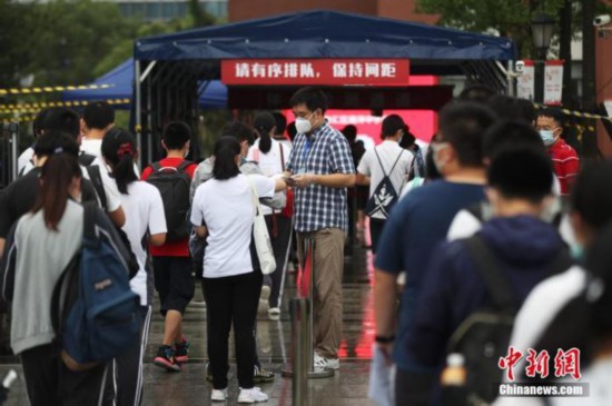 資料圖:2020年7月6日,江蘇南京一處考點(diǎn),高考考生看完考場(chǎng)后走出考點(diǎn)。 中新社記者 泱波 攝