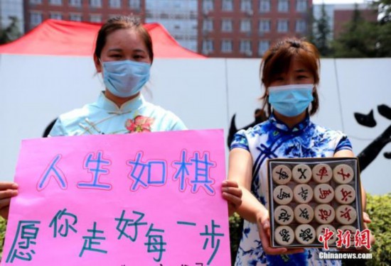 資料圖:2020年7月河南鄭州一高考考點(diǎn),考生家長(zhǎng)送考 中新社記者 王中舉 攝