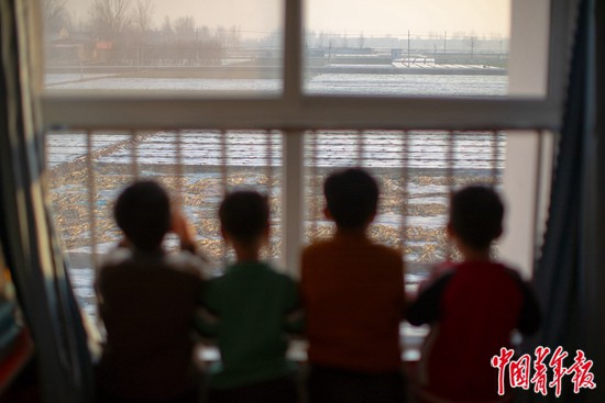 2019年12月13日,河北省邯鄲市大名縣營(yíng)鎮(zhèn)鄉(xiāng)中心幼兒園,孩子們趴在教室的窗口。中青報(bào)·中青網(wǎng)記者 李雋輝/攝