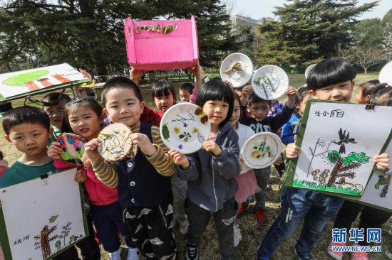3月30日,小朋友們在中國兒童中心內(nèi)展示“畫春天”作品。