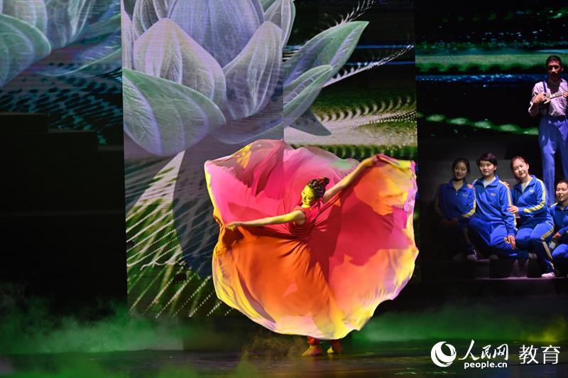 學(xué)生在臺上進行舞蹈表演。人民網(wǎng)記者 何淼 攝