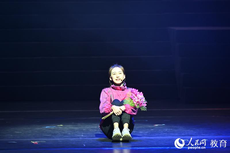 學(xué)生在臺上進(jìn)行朗誦表演。人民網(wǎng)記者 何淼 攝