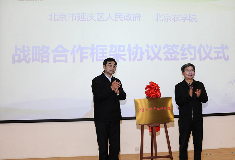北京市延慶區(qū)委常委、常務(wù)副區(qū)長(zhǎng)葉大華與北京農(nóng)學(xué)院副校長(zhǎng)段留生代表雙方簽署戰(zhàn)略合作協(xié)議,協(xié)議指出雙方將在“優(yōu)質(zhì)資源引進(jìn)、綠色發(fā)展研究、都市農(nóng)業(yè)增效、人才培養(yǎng)培訓(xùn)”四方面開(kāi)展深度合作。