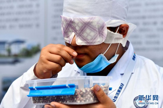 5月20日,在山東國際會展中心,濟(jì)南護(hù)理職業(yè)學(xué)院學(xué)生展示聞香識藥技能。