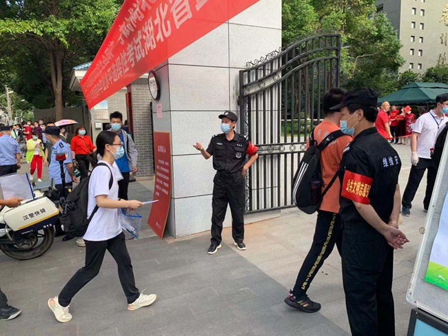 湖北省武昌實驗中學(xué)考點,考生陸續(xù)進(jìn)考場。肖璐欣攝