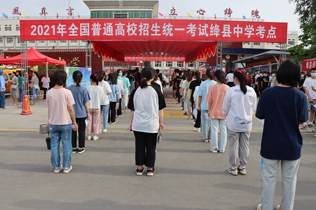 山西運城絳縣中學(xué)考點,考生排隊入場。郭環(huán)中攝