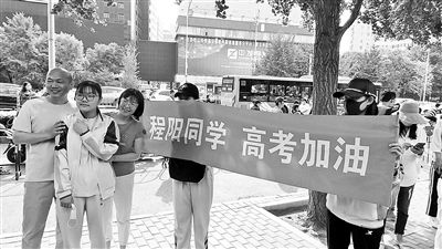 每年考場門口送考團的加油鼓勵,都能給考生們帶來不少動力與能量,也時有感人的情境發(fā)生。昨天上午,兩位高一女生拉橫幅為高三學姐加油的一幕,格外引人注目——展開的紅色橫幅上寫著“程陽同學,高考加油”。