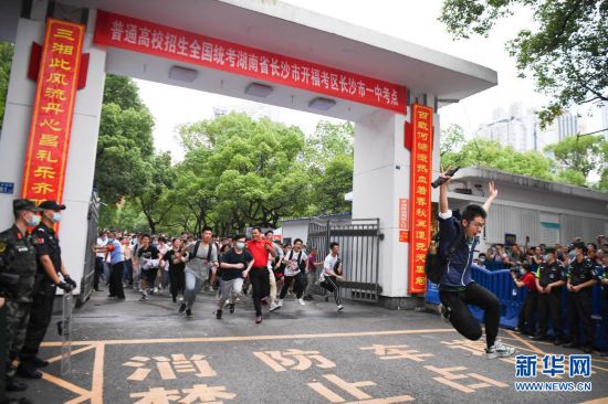 6月9日,考生在考試結(jié)束后跑出湖南省長(zhǎng)沙市一中考點(diǎn)。
