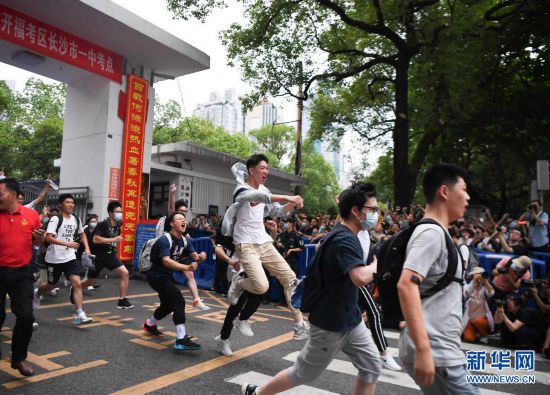 6月9日,考生在考試結(jié)束后跑出湖南省長(zhǎng)沙市一中考點(diǎn)。
