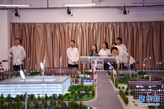 天津大學(xué)智能與計(jì)算學(xué)部的學(xué)生在沙盤教室內(nèi)調(diào)試設(shè)備(6月16日攝)。